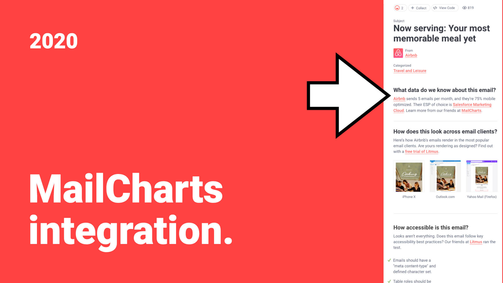 Now we have our own blog, so check out our articles. We also have MailCharts integration. Who's noticed this. All right, so check this out. This is actually, you can go and see your competition or other people's emails and see who they're using and some of the data about it. MailCharts itself has a ton more information about that, but we're pulling in some, so check that out.