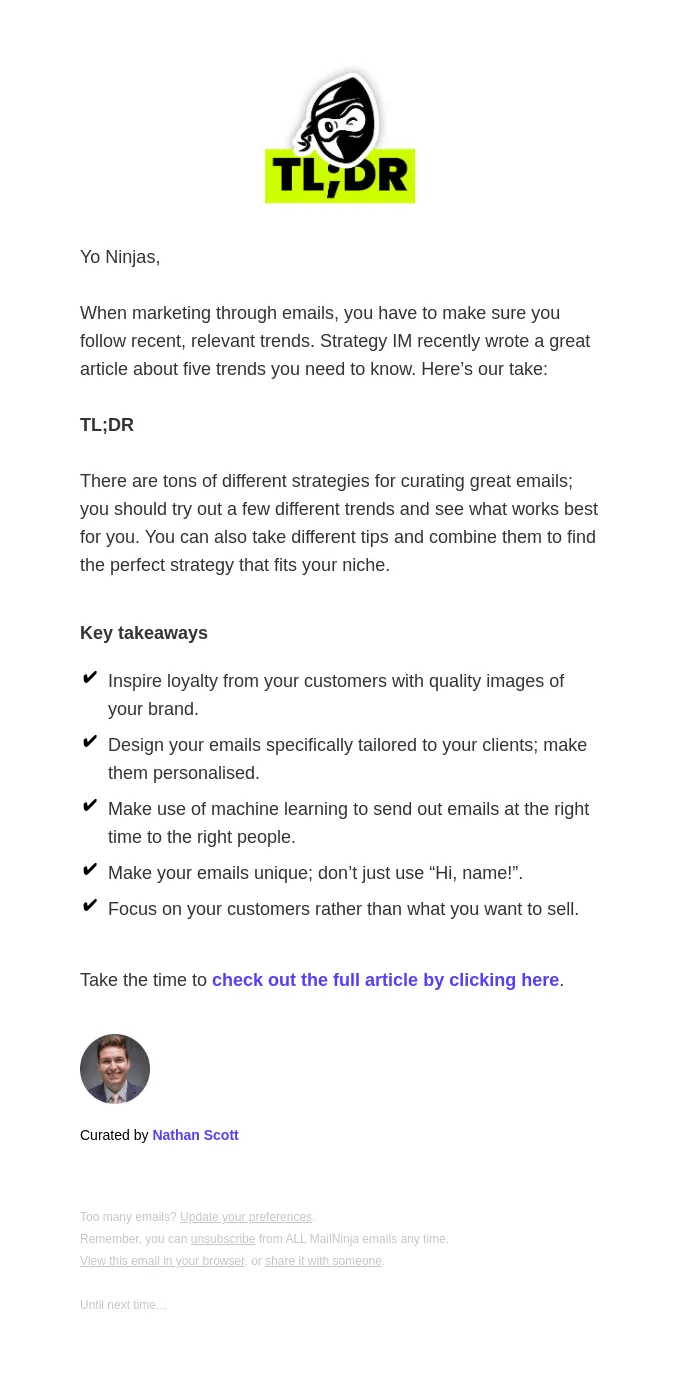 That's how we felt when someone forwarded us TL;DR by MailNinja - a simple email that we'll get to in a bit down below. And in doing a little more research, we connected with Doug who gave us the down-low on what it's like running their email agency. This is how the interview went and what we learned in the process in case you are wondering how ninjas operate.