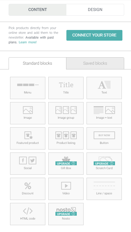 Keep in mind, blocks can weigh down your email. The fewer blocks you have in your email, the smaller your email file size will be, which will be better for email loading times and for your audience’s experience.