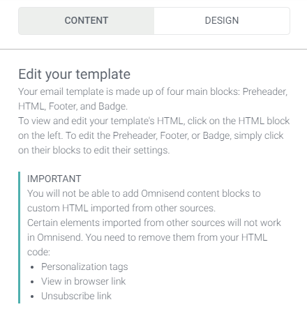 - If your team decides to import an HTML file instead of using the drag and drop, that might disable the option to use the WYSIWYG editor, and you’ll need to edit the template using HTML and CSS.