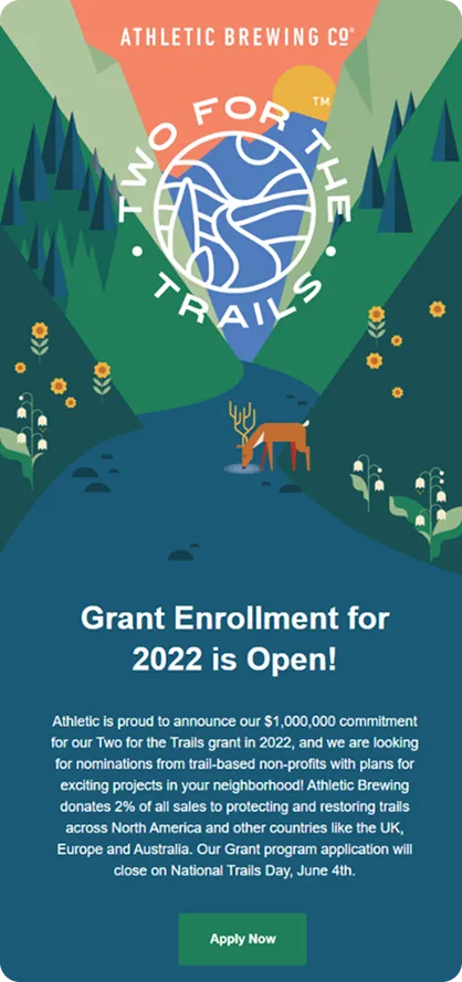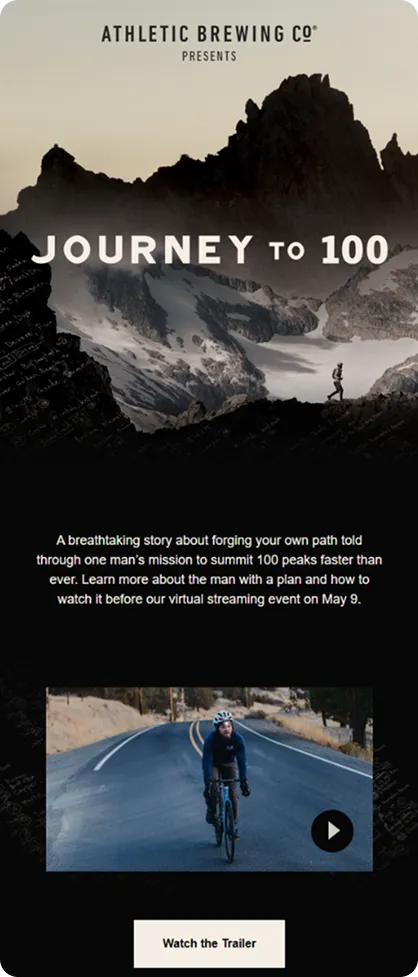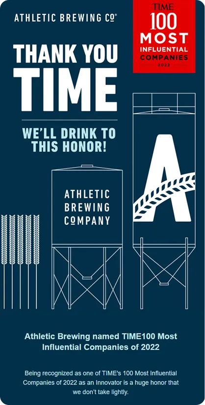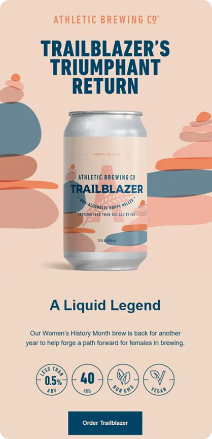How do you make non-alcoholic beer feel this cool in the inbox? Athletic Brewing achieves this with bold visuals, confident branding, and emails that seamlessly blend product, lifestyle, and purpose in a way few beverage brands manage to pull off.