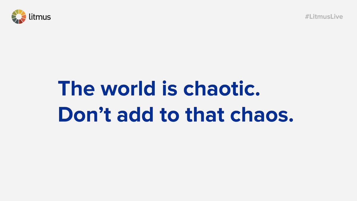 I think this idea kind of threads through all of this is that. The world right now is very chaotic. It feels very uncertain. It's increasing people's levels of anxiety and our goal as email markers is not to add to that chaos, is to not overwhelm people. To really think about what we're sending people when we're sending it, what kind of messaging we're using, what kind of value we're providing so that we do it right and that we try to reassure people, we try to calm them and we try to give them the tools they need to handle such a difficult time and that we're not adding to that chaos.