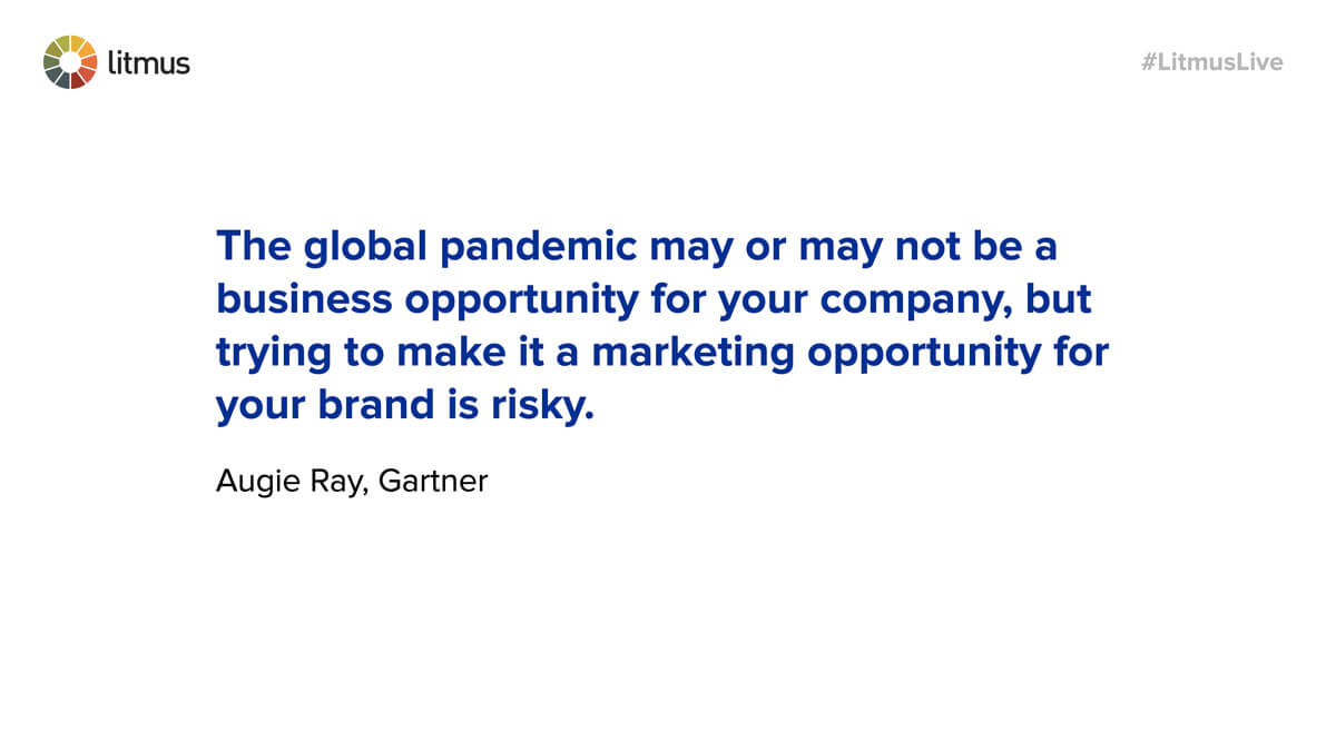 As we've seen, everybody's experiencing this fear, experiencing this anxiety because so much is uncertain and so much is changing so quickly. The last thing we think that people should be seeing from you is trying to capitalize on that. There's this great article on Gartner from Augie Ray talking about this global pandemic.