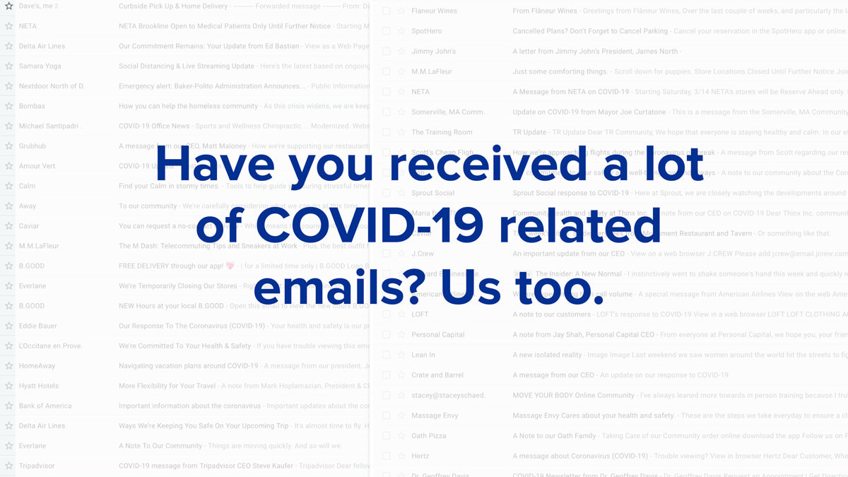 So definitely a really trying situation, not only in work, but in life, in our personal relationships as we all try to work through, these really uncertain times. I'm sure everybody's seen their inboxes just flooded with emails from all types of different senders, related to the coronavirus related to COVID-19.