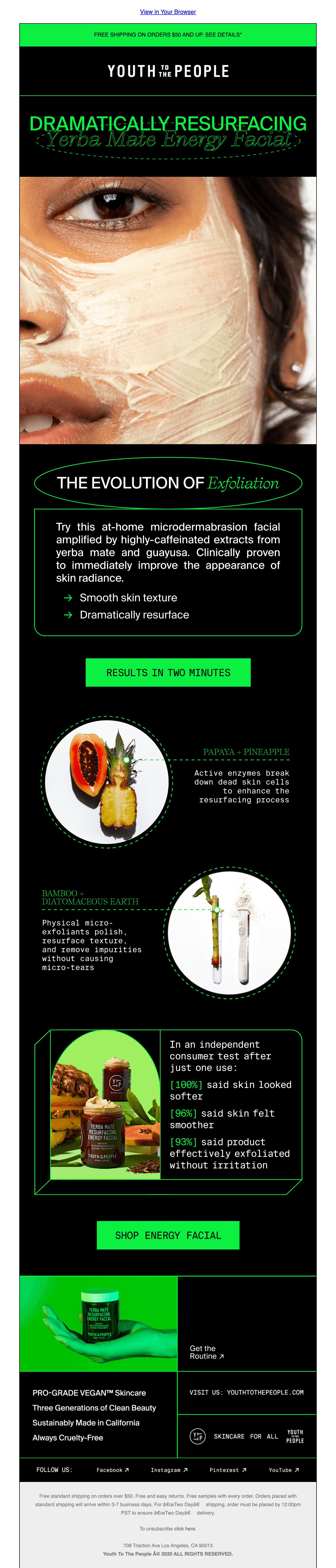 Youth to the People is a sustainable skincare company based in Los Angeles, California, creating cruelty-free beauty products.