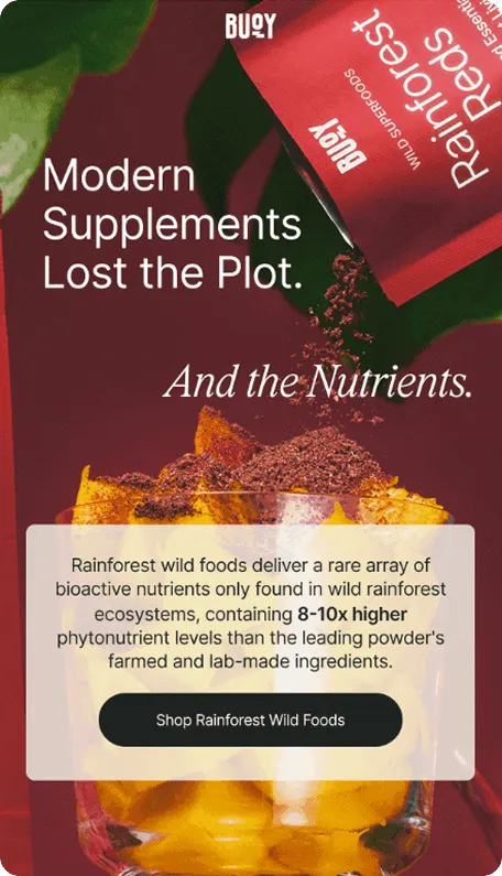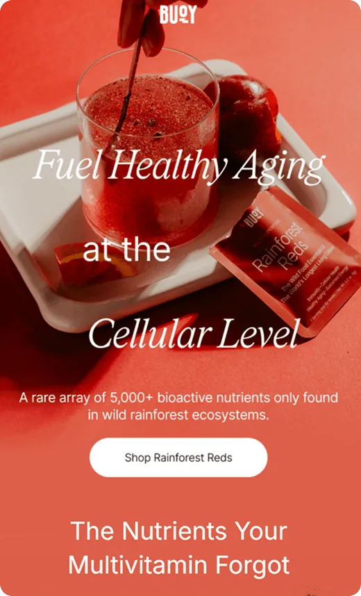 How do you sell supplements in the inbox without overwhelming people with science or losing them before the click? Buoy approaches this challenge with bold color systems, a strong visual identity, and emails that lean heavily into education, sometimes at the expense of clarity and conversion.